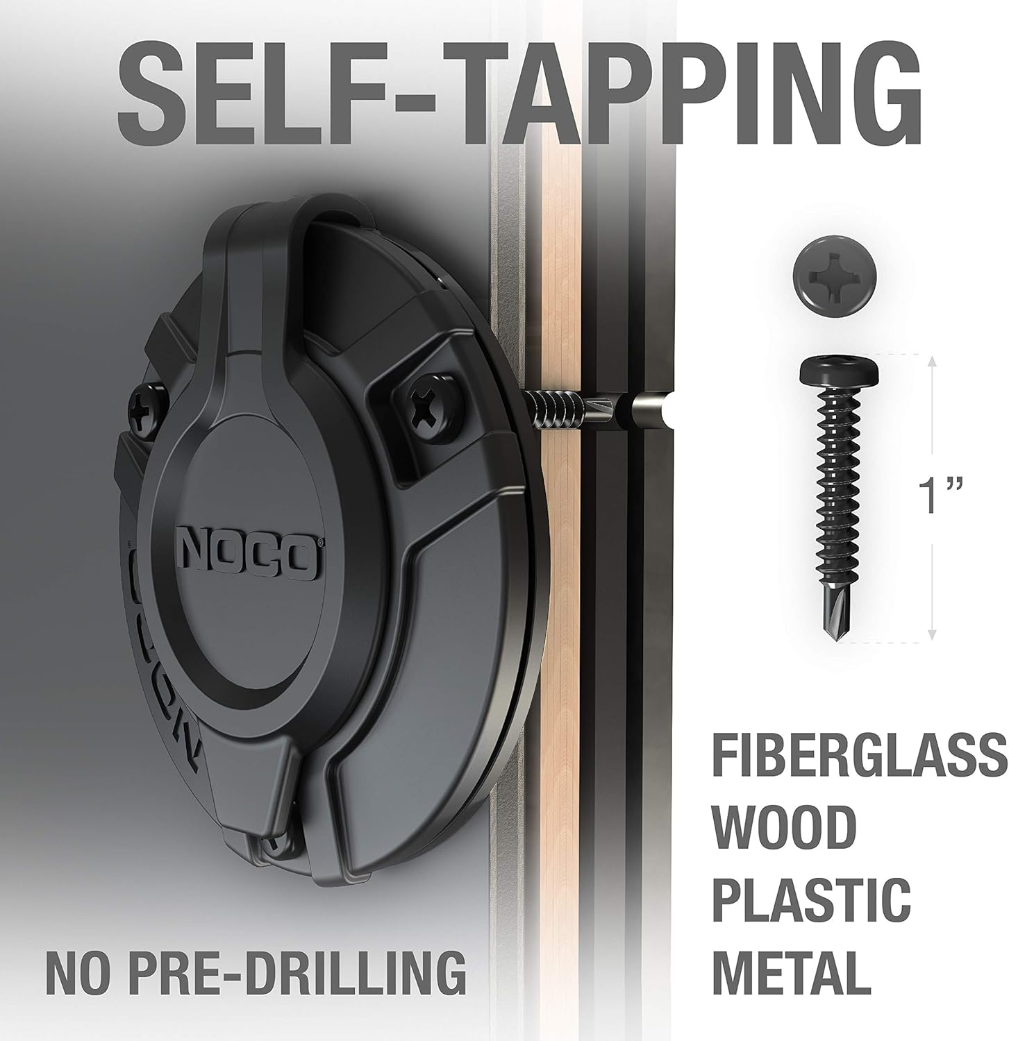 Perfore fibra de vidrio, madera, plástico y metal con 3 tornillos autorroscantes.